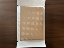 パッケージを開けると、金色の正方形の台紙がルナサンドクッキーに敷いてあります。ちょっと過保護すぎやしないか…と思いましたが、美しいラインの入ったクッキーのビジュアルに過保護にもしたくなるよね、と妙に納得感があります。