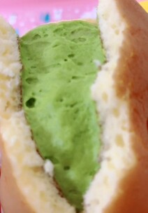 そして「石臼でひいた鮮やかな緑の宇治抹茶」というだけあって、抹茶の色が尋常じゃないです!ドキドキで食べてみたら、濃さは全くなく「幸せ抹茶ふわふわクリーム♪」という感じで、私は抹茶が1番好きです!