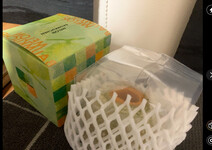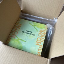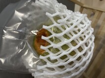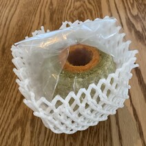 その箱を開けると、本物のメロンのように網目状の白い緩衝材に包まれたバウムクーヘンが入っていました。