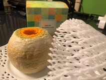 本物のメロンを食べているような贅沢な気分で、美味しいバウムクーヘンを楽しみました。