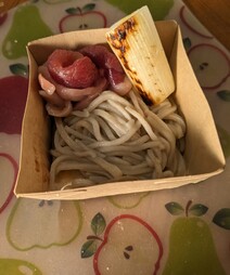 細めながらもコシがあり、蕎麦の風味もしっかりと感じられました。次につゆに付けて食べると、鴨肉の旨味が染み込んだつゆともしっかり絡んで美味しい!鴨肉も冷凍食品だとカチカチになっていますが、程よい弾力がありながらも柔らかく臭みもない鴨肉で、さすが最高級合鴨ブランドと言われるだけあるなぁと思いました!