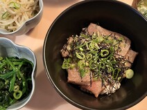 ネギ塩だれ焼肉丼としてごはんに乗せてみました。