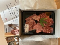 指定日にクール便で到着しました。黒い化粧箱は高級感があり、中にお手紙、部位のカードが入っています。 (冷蔵の場合は3日以内、冷凍で1ヶ月保つそうです。)