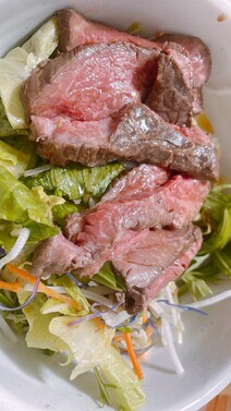 ローストビーフは柔らかいのに噛み応えもあり、お肉のうまみが噛めば噛むほど溢れ出す感じでした。タレとの相性もぴったりで、お皿いっぱいに並べたのに、あっという間に食べきりました。