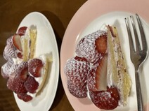 包丁で切って食べようとすると崩れてしまって綺麗に切ることはできませんでした。でも味も美味しくて大満足です。甘すぎずにすっきり食べられるしいちごがたくさんあっていちご好きにはたまりません。