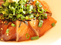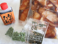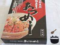 原材料:ぶり、あつめしのたれ(醤油、清酒、米発酵調味料、砂糖、魚醤、食酢)、ごま、のり、ねぎなど
