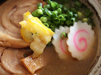 具入りスープ(動物エキススープ(ポーク、チキン)、醤油、魚介エキススープ(鯖、煮干、鰹)、