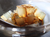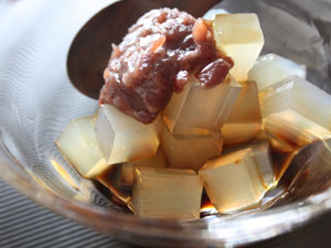 サクッとした食感が楽しめる、角切りところてんのあんみつ