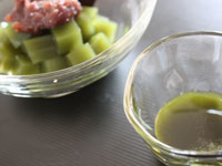 確かに冷えた角切りところてんをツルンと口に含むと、寒天とは異なるサクサクッとした食感とともに、清く澄んだ水の味がどっと溢れ出ます!