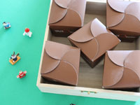 こちらのチョコレートケーキはいわゆるホール型ではなく、約5cm角の大きめなプチガトーサイズ。それが1つずつ丁寧に個包装されて、"桐箱"に5つ並んで届きます。