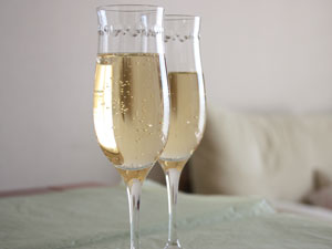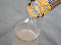シャンパングラスに注ぐと、爽やかな梅酒の香りとともに微細な泡が立ち上り、華やかな気分に。