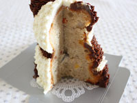 気になる中身は、意外にもパイナップルやマンゴーといったトロピカルフルーツが刻まれた甘さ控えめのフルーツケーキになっています☆