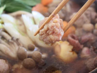 原材料:しゃも肉 、つみれ(しゃも肉、鶏肉、玉葱、澱粉、酒など)、豆腐(大豆、凝固剤など)