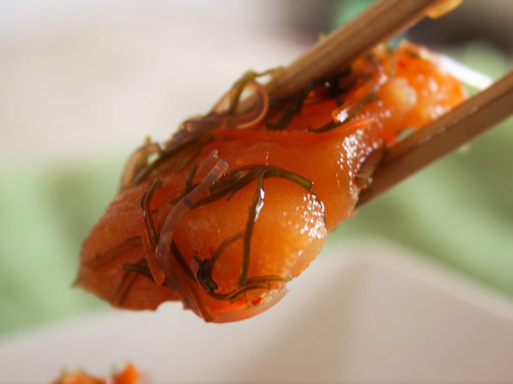 数の子を主原料として扱っているだけあって、ねぶた松前漬けは今時珍しいくらい数の子の量が多く、ボリュームたっぷり!!そこに北海名産のガゴメ昆布、スルメ、緑豆はるさめが加わり、ねぶた祭りの迫力さながらに食べ応えがあります。またこれらの材料を一つにまとめ上げているオリジナル調味料が、甘めの濃い味でこれまた旨い!新米に合わせても良し、お酒の肴にしても良し。精選されたコリコリの数の子を贅沢にお楽しみください。