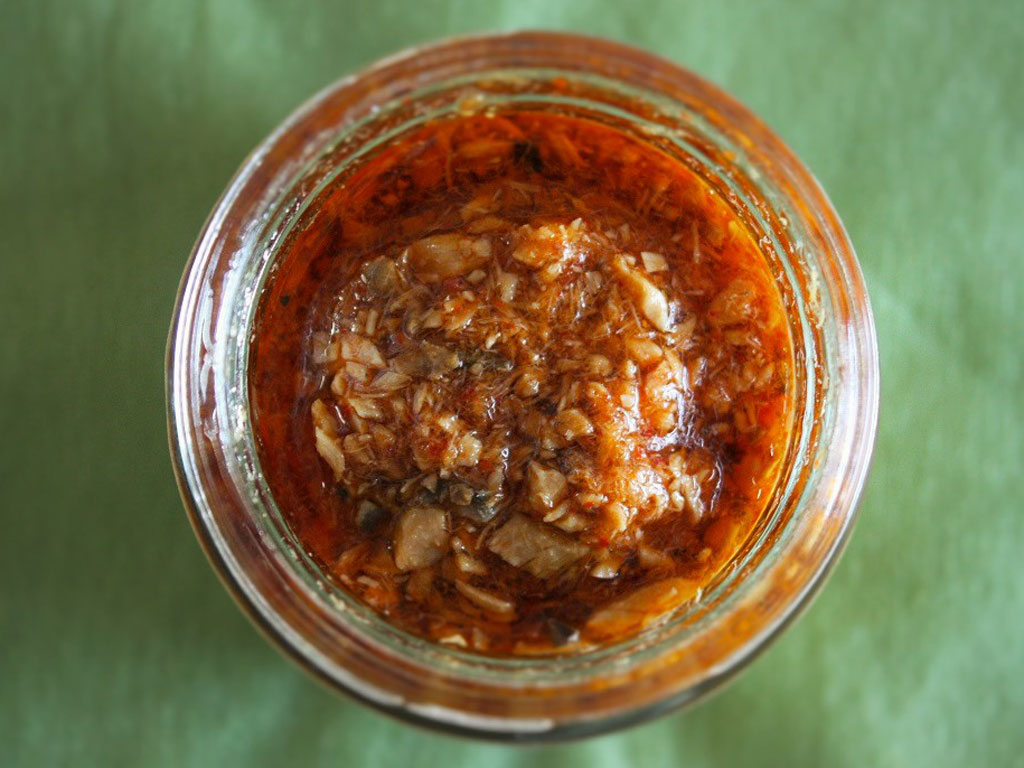 "赤"かつお???って思いますよね。確かに届いた瓶を見ると、赤い液体が揺らめいています。そうこちらは、かつおの身をほぐし、油と一味を加えたもの。うま味たっぷりの贅沢な「おかずラー油」と言ったところでしょうか。そこに爽やかなゆずと昆布のだしが加わり、ご飯にぴったりの深い味わいとなっています。