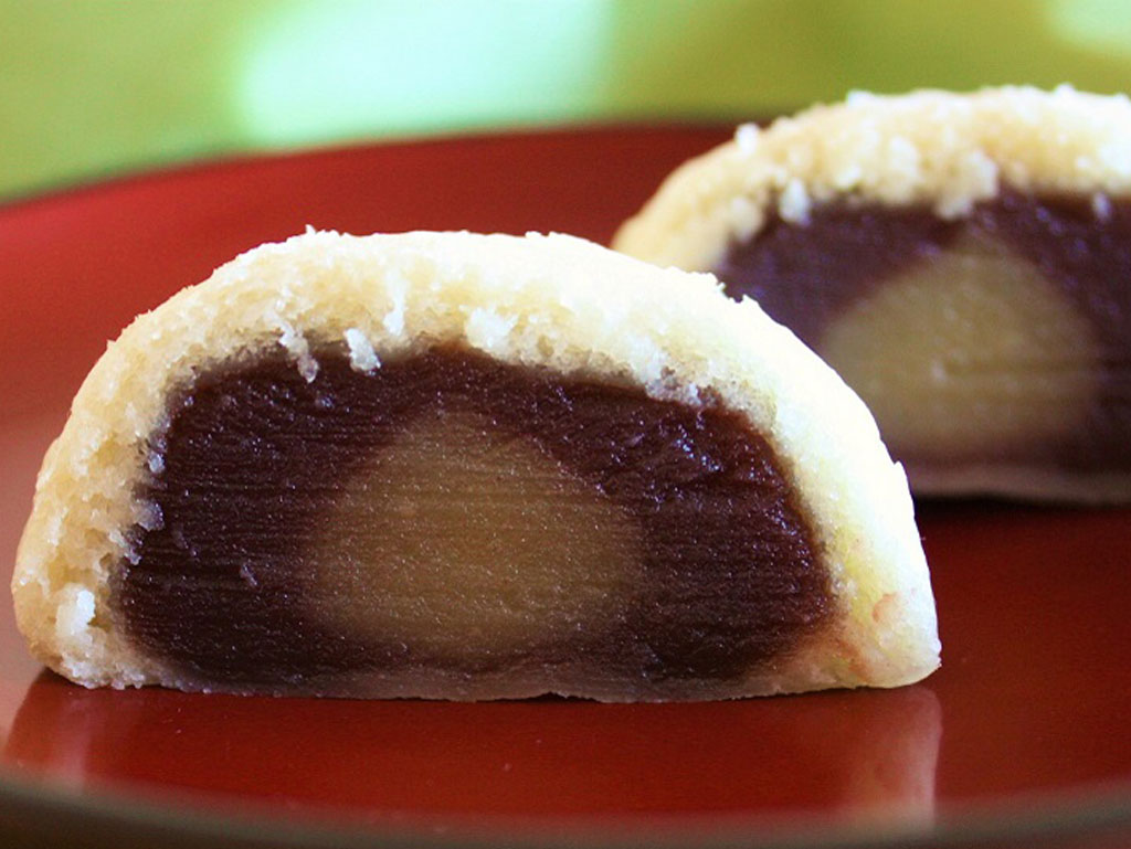 温泉旅行の思い出そのままに。栗餡とこし餡の二色あんまんじゅう。