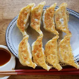 羽根木餃子は羽根をつけて焼くと食感のアクセントが出て更に美味しく食べられます。餃子を蒸すタイミングで、水に強力粉を小さじ1混ぜた溶き水を使うとキレイな羽根が簡単にできます。